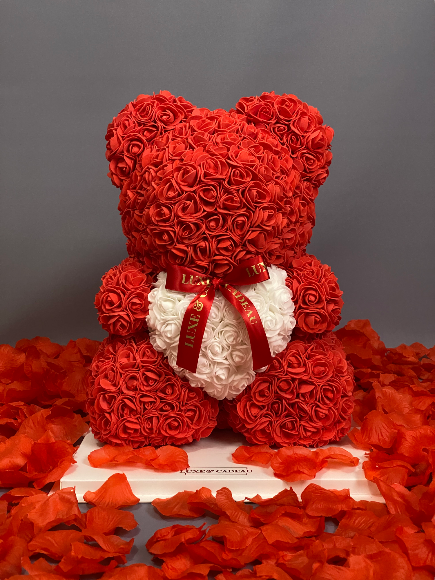 UN ASSEMBLAGE DE QUALITE SUPERIEURE ! Tous nos oursons sont fabriqués à la main en France ! Le matériel de haute qualité . Nous trions et préparons toutes les roses à la main.