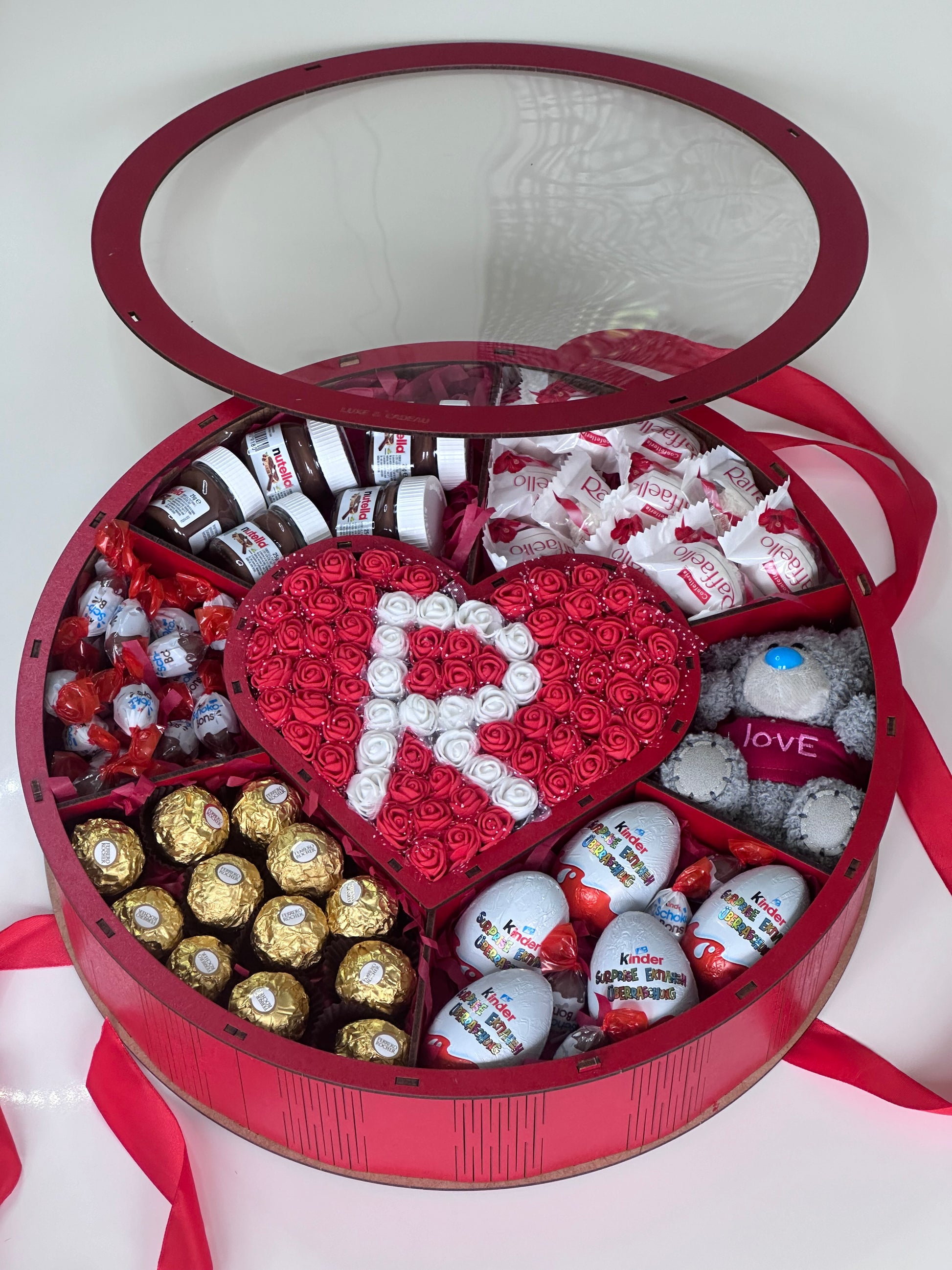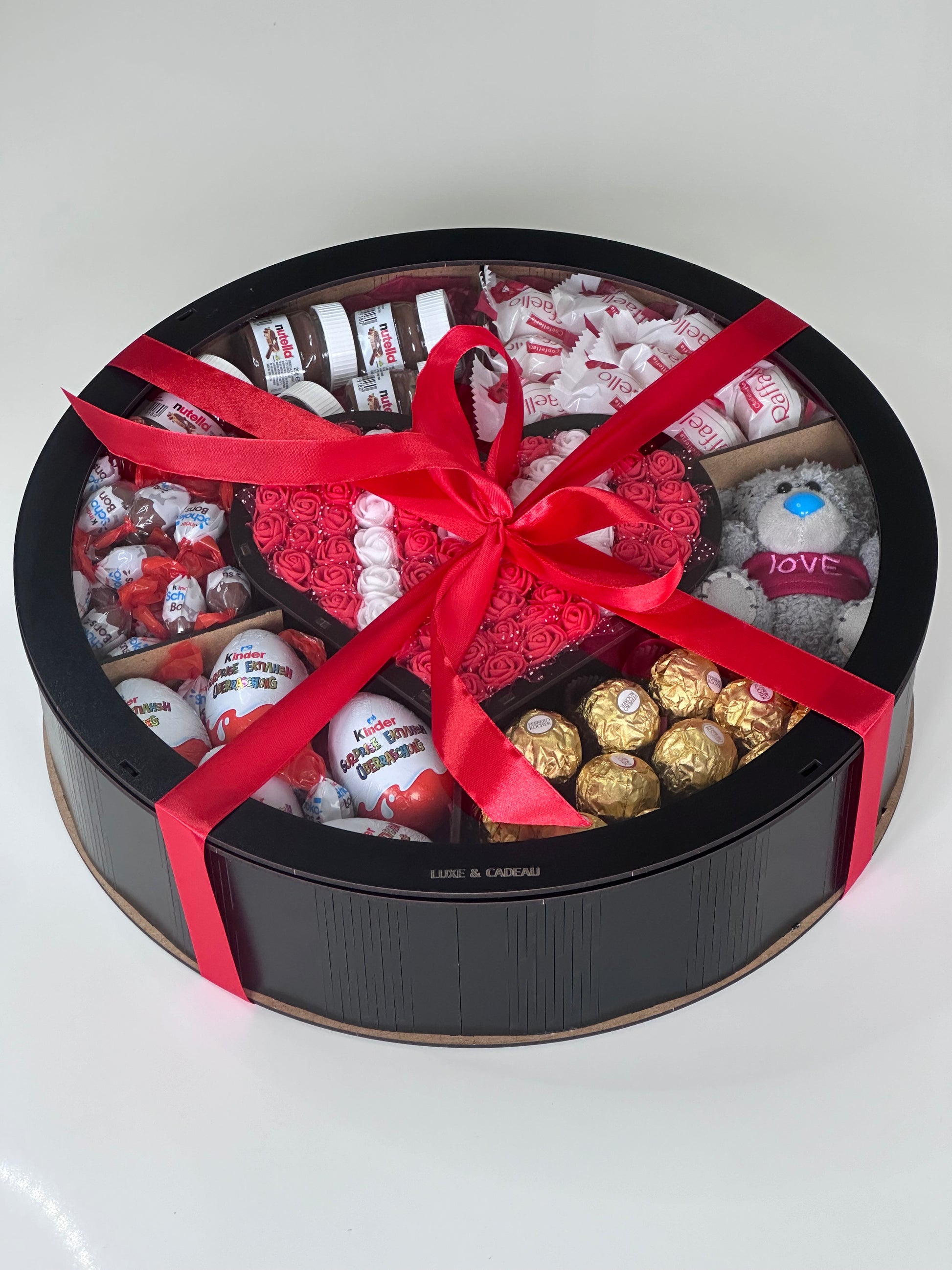 🍫 Autour, vos douceurs préférées : Ferrero Rocher, Nutella, Kinder Surprise, et Raffaello, qui ajoutent une touche de gourmandise et de luxe.